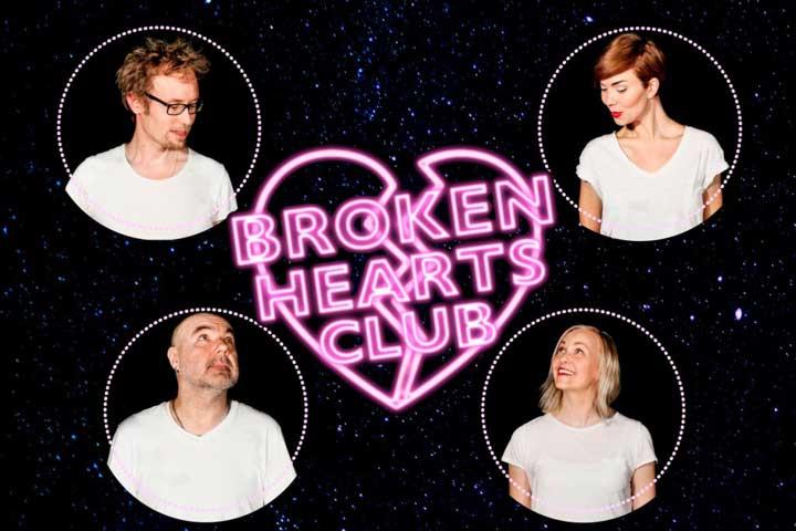 Broken Hearts Club on KokoTeatterin uusi musiikkiteatteriklubi, jossa matkataan käänteisessä aikajärjestyksessä eroista ja suruista parisuhteen käännekohtien kautta ensirakastumisen huumaan.