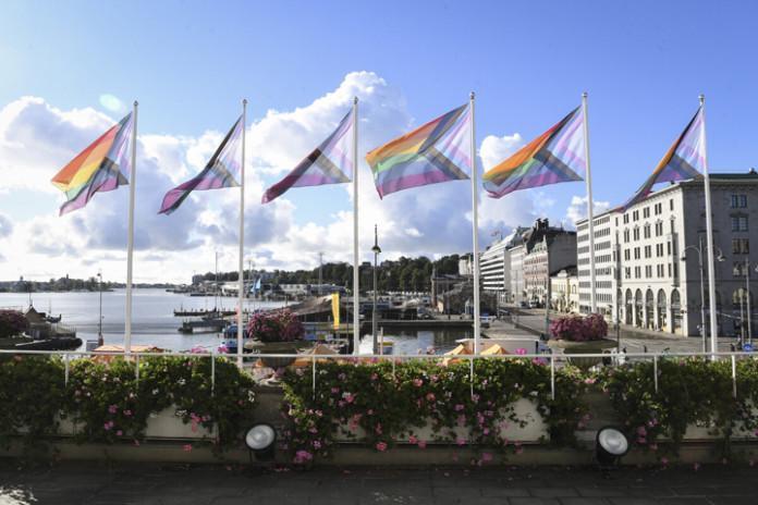 Kaupungintalon lipputangoissa liehuvat progressiiviset Pride-liput. Lipun tarkoituksena on tehdä näkyväksi LHBTIQ-ihmiset sekä vähemmistöt vähemmistössä. Tuttujen vaakasuorien raitojen lisäksi lipussa on mustaa ja ruskeaa sekä vaaleansinistä, vaaleanpunaista ja valkoista. Helsinki otti ensimmäisenä julkisena tahona Suomessa progressiivisen lipun käyttöön viime vuonna. Kaupunki liputtaa myös perinteisin Pride-lipuin muissa toimipisteissään, kuten Uimastadionilla, Pirkkolan liikuntapuistossa ja Vanhankaupunginkosken kalastusinfossa.