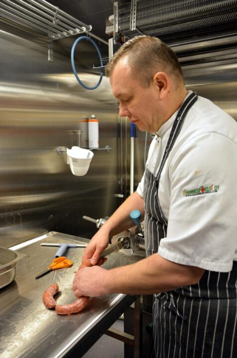 – Kaikki makkarat tehdään itse täällä paikan päällä suomalaisista raaka-aineista. Nyt käytämme enimmäkseen Urjalasta, Paijan tilalta tulevaa possua ja jonkin verran lammasta. Tulevaisuudessa tulemme tekemään myös hevos-, hirvi- ja naudanlihamakkaraa. Ne ovat sitten hieman erikoisempia makkaroita, ravintoloitsija Yoni Ichtertz paljastaa.