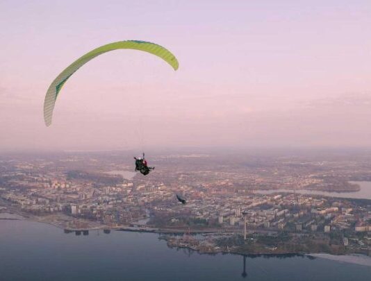 Varjoliitokerho Extreme Team Tampere järjestää varjoliitoja Näsijärven yllä. Tampereen järviseudun kauneudet voi kokea ilmasta käsin.