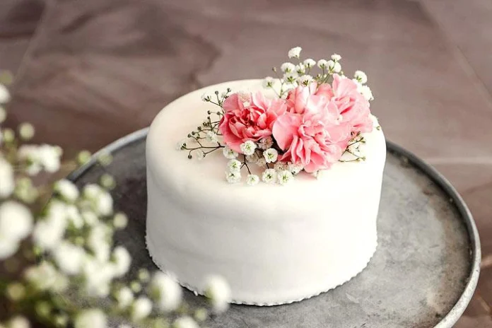 Kuvan (yllä) Paloman kakku on juhlapöydän tyylikkäin kaikessa yksinkertaisuudessaan. Sokerikuorrutuksen alta löytyy vaalea kakkupohja, raikasta vadelmaa sekä kermaa.