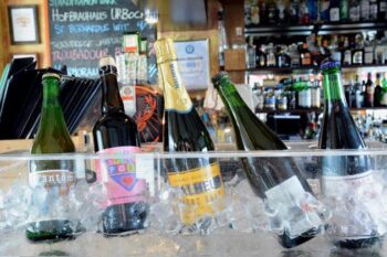 Maustettua ja maustamatonta, tummaa ja vaaleaa, lambiceja monenlaisia. Isoja pulloja mutta pieniäkin tuopposia. Tuulensuun Isoilla Viikoilla suuria olutpulloja korkkaillaan lasitarjoiluun.