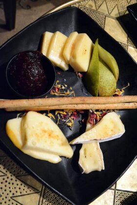 Tapaslautanen onkin juuri sopivainen punaviinilasillisen kaverina nautiskeltavaksi vaikkapa teatteriesityksen yhteydessä, sillä annoksen koko on passeli myös ystävän kanssa jaettavaksi. Juustot tulevat Mouhijärveltä juustotaituri Peter Dörigin Herkkujuustolasta. Suomalaisia ja erityisesti lähiraaka-aineita suositaan muutenkin, mutta ruoka kulkee silti ennen kaikkea maku edellä. Niitä makuja voi muuten tilata aina valomerkkiin asti ja nautiskella myös Kiven suosittujen keikkojen, musiikki- ynnä muiden esitysten aikana.