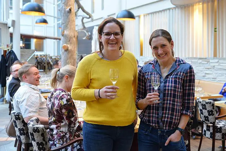 Rheingaun viinialueella sijaitsevan viinitalo Georg Breuerin Theresa Breuer sekä Moselin alueen Grans-Fassianin Catherina Grans saapuivat juomineen winemakers’ dinnerin tähdiksi 25.4. Taitonaiset säkenöivät kilpaa viiniensä kanssa, ja harvoin pääseekään nauttimaan yhtä rennosta, ytimekkäästä ja lennokkaasta viinikerronnasta. Viinintekijät puolestaan pääsivät nauttimaan heille aivan uudenlaisista raaka-aineista ja makuyhdistelmistä, sillä kumpikaan ei ollut aikaisemmin esimerkiksi riekkoa tai poroa puraissut. Silti heidän viininsä juttelivat mm. juuri poroannoksen kanssa kuin vanhat tuttavukset spätburgunder-hurmurista siihen riesling-rakkaaseen saakka.
