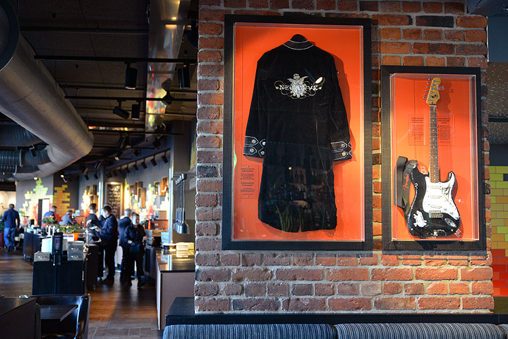 – Ehkä merkittävimpiä näistä uusista esineistä ovat Jonne Aaronin flyygeli ja ihan hiljattain saapunut Costello Hautamäen tulisuihkuava kitara. Esineet myös ajoitellen vaihtuvat. Kun Pate Mustajärvi halusi nahkarotsinsa takaisin, hän antoi vaihtarina Triumph-nahkaliivinsä, joka kertoo puolestaan tarinaa artistin rakkaudesta moottoripyöräänsä, valottaa Paja Barin ja Moro Sky Barin ravintolapäällikkö Ergys Fucija.