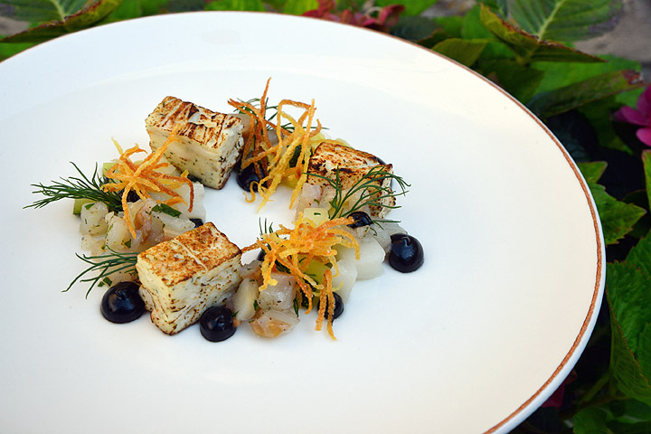 Eväkäsvalikoimaan kuuluu myös siikaa kahdella tapaa. Siikaa on lautasella katajanmarjagraavattuna ja kylmäsavulohta sisältävinä murekekuutioina. Kalan kaveriksi on valmistettu greippivinaigrettea, mustekalanmusteella värjättyä muhkean makuista sipulipyreetä, maa-artisokka-kesäkurpitsasalaattia ja perunasipsiä.