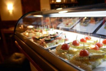 Antipasto-vitriini on ilmestynyt Piemonten baaritiskin päätyyn. Arkipäivisin klo 15-18 eli sopivaisesti työpäivän päätteeksi siinä on tarjolla vaihtuva antipasto-valikoima, josta asiakas voi valita kaksi antipastoa ja pienen oluen tai lasillisen viiniä 10 eurolla. Vaihtoehtona on myös virvoitusjuoma, mutta kukapa voisi vastustaa lasillista laatuviiniä tai kylmää olutta herkkupalan painikkeena?