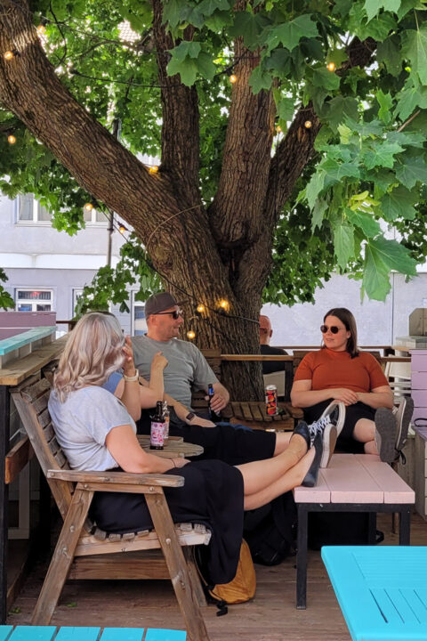 Piskuisessa puistomaisessa ympäristössä on letkeää viettää suvipäivää suojassa paahtavalta auringolta. Illan hämärtyessä puiden oksille ripustetut valot luovat tunnelmallisen maiseman. Pienestä myyntikojusta voi napata raikastavan juoman mukaan.