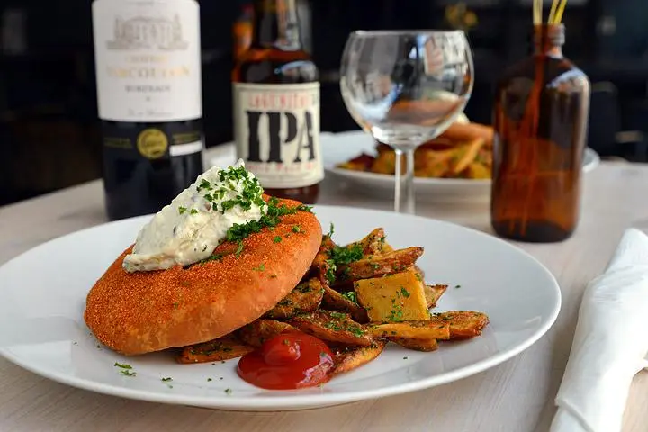 Vaikka Pyyn annosvalikoimasta löytyy myös fiinimpää risottoa ja hurmaavia jälkiruokakakkuja, loihtii keittiömestari Darren Elmhirstin hallinnoima keittiö voittopuolisesti krouvia ruokaa. Sellaista hyvistä raaka-aineista huolella valmistettua grilliruokaa, josta mainio esimerkki on laajalti kehuja kerännyt fish & chips -annos. Sen saa muuten niin turskaisena kuin järvikalaisenakin versiona. Jälkimmäiseen käytetään paikallisen kalastajan eväkkäitä.
