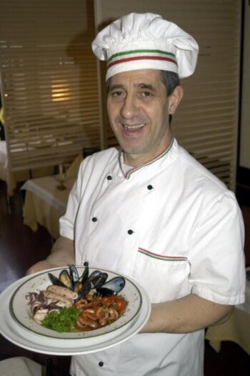– Nykyään kaikki yrittävät tehdä samanlaista ruokaa kuin muut. Uskon aitoihin makuihin ja omannäköisen ruoan tekemiseen. Ja täällä meillä saa italialaisen ruoan lisäksi myös annoksen italialaista kulttuuria, Carlo kertoilee risottoa hämmentäessään. Pannulle lorautetaan valkoviiniä ja sitten taas kasvislientä. Ja hämmennetään, hämmennetään ja hämmennetään.
