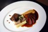 Keittiömestari Otto Sovelius on jälleen loihtinut listallisen kauniita ja mielenkiintoisia annoksia. Alkuruokapuolen piristävä ja hauska combo on Black & Pineapple eli Tapolan mustaamakkaraa tuoreella tavalla ananascarpaccion kaverina. Idea annokseen syttyi lissabonilaisessa viinibaarissa. Siellä Otto maisteli annoksen, jossa oli yhdistetty paikallista morcilla-verimakkaraa ja ananasta. Suomessahan mustamakkara syödään perinteisesti puolukkahillon kanssa, mutta ananas ei loppujen lopuksi ole makumaisemaltaan niin kovin kaukana siitä. Makea ja hapan sekin. Toimii.