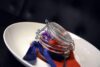 Luovuus rönsyilee ja kukkii suloisesti myös jälkiruokien saralla. Erityisesti sykäyttää suklaaunelma, jonka itse säikeilty sokerikori hellii sisällään omatekoisia suklaisia suupaloja: valkoista, tummaa, minttua, pähkinää, lakkaa, karamellia… Idean annokseen Otto sai linnunpesämäisestä kuvasta, joka sinällään muistuttaa hänen omaa luomustaan perin etäisesti. Mutta inspiraatiokuva napattiin talteen ja mieleen muhimaan. Kun silmiin osui sitten Jali ja suklaatehdas -elokuva, oli idea valmis: syötävä kupillinen erilaisia suklaamakeisia. Yksi niistä ehdottomasti suklaisen tikkukaramellin muodossa. Unelmallista.