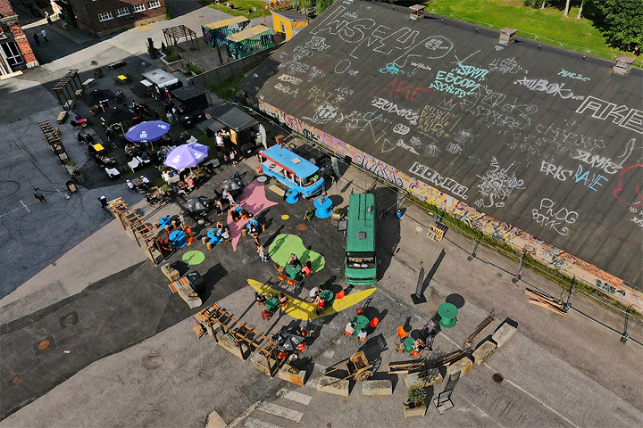 Hiedanrannan tehdasalue tarjoaa rosoista taidetta ja tunnelmallisen katuruoka-alueen, joka on kesän ehdoton suosikki rennon street foodin ystäville Tampereella. Aurinkoiselle terassille mahtuu 250 asiakasta, ja paikalle pääsee helposti ratikalla numero yksi alle vartissa keskustasta.