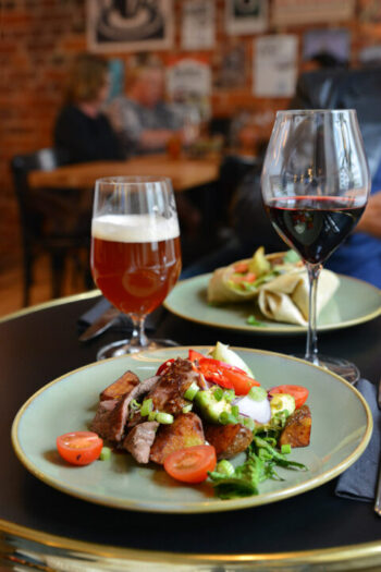 – Mielestäni on hienoa, että täällä on kaksi erilaista kerrosta ja vielä useita erilaisia tiloja. Alakerrassa on esimerkiksi mukava ja suojaisa oman rauhan pubinurkkaus, jossa seurata urheilua. Ylhäällä taas on valoisa lounge-tyylinen tila kaari-ikkunoineen ja ikkunapöytineen, jossa istuskella viinillä. Lisäksi löytyy helposti kabinetiksikin muovautuva tila, Nurmenniemi kuvailee.