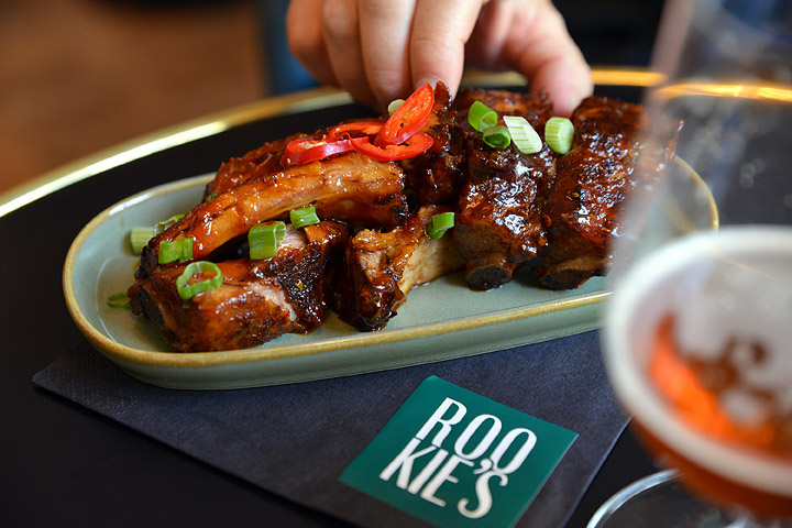 Perinteisten sporttibaareissa naposteltujen kanansiipien eli wingsien sijaan Rookie’s kokkaa pig wingsejä.