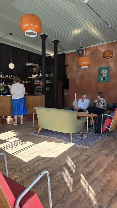 Onkiniemen vanhasta tulitikkutehtaasta peräisin oleva nostalginen baaritiski on tuunattu tilan tunnelmaan sopivaksi. Ahvenainen kertoo, että jossain vaiheessa tiskin äärellä voidaan järjestää myös illastusta menukokonaisuuksien merkeissä.