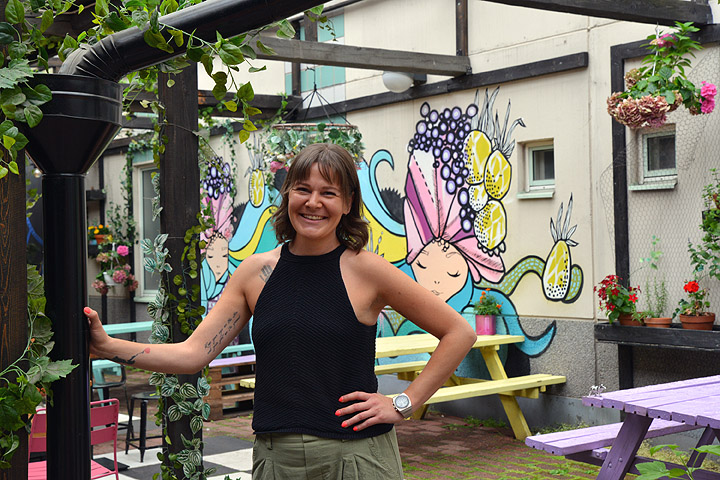 – Tässä työssä on tosi paljon liikkuvia osia, mutta onneksi täällä on paljon huikeita tyyppejä, jotka neuvoivat alkuun. Pääsin hyvin kärryille esimerkiksi siitä, miten erilaisia juomia eri keikkayleisöt haluavat juoda.